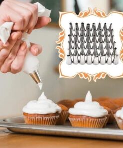 - חבילה כוללת: 24 סט קישוט עוגות חרירי, 1 x שקית מאפה, 1 x ממיר צנרת