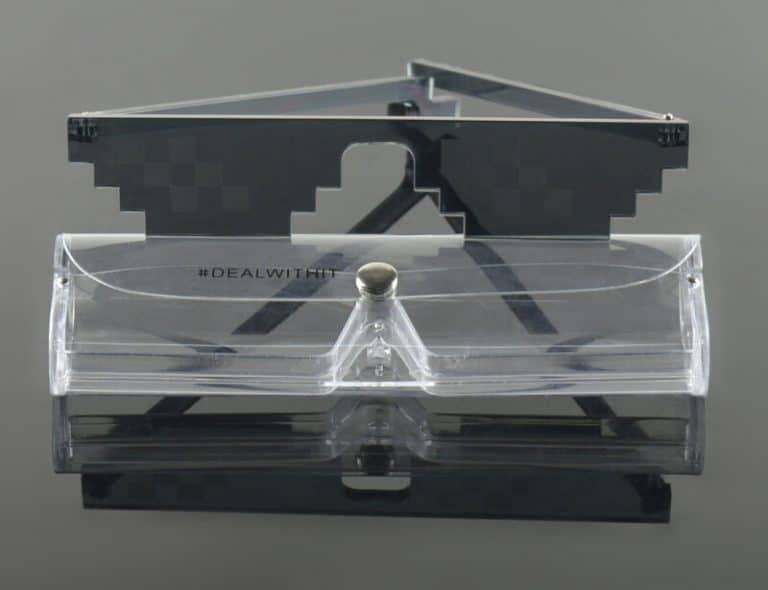 Package Include: 1 * “Deal With It” Thug Life Meme Sunglasses, 1 * Glasses Box, 1 * Glasses Cloth, 1 * Professional Goggles String