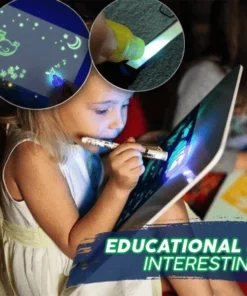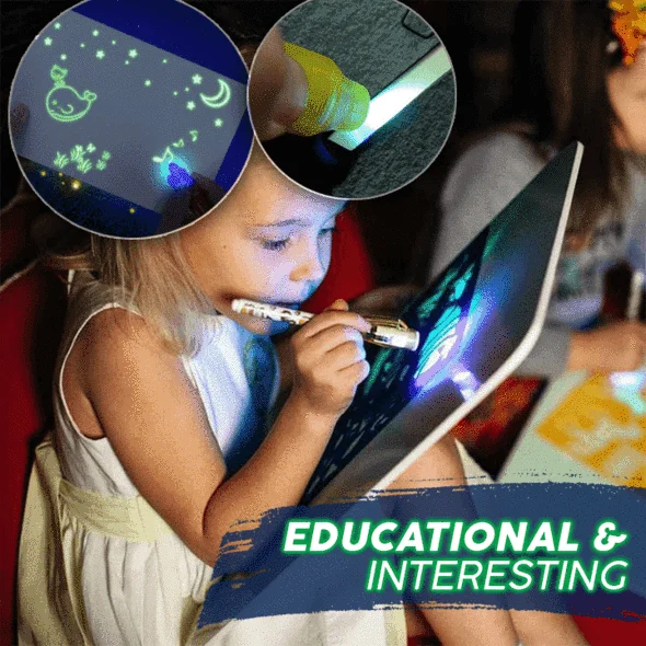 - הפעל את עטי ה-LED הזוהרים הכלולים, והתחל לצייר או לכתוב על משטח הלוח.