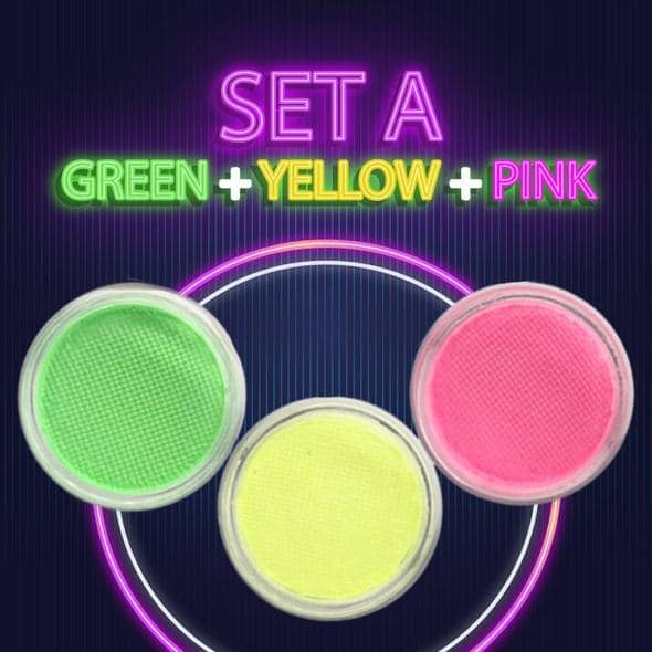 סט A (צהוב + ורוד + ירוק); סט B (כחול + סגול + ירוק)