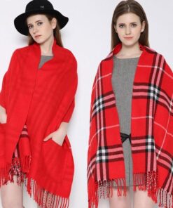 עטיפת צעיף משובץ עם כיסים