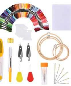החבילה כוללת: 50x חוטי רקמה, 5x חישוקי רקמה, 2x תפר צלב בד, 9x 1x Needles, 9x Needles, 1x Needles, Needles תוספות, 1x אצבעון, 1x מרטש