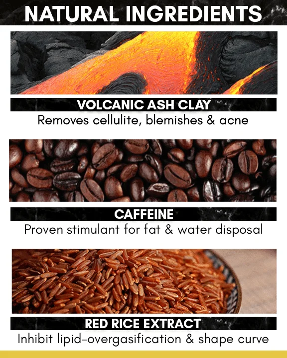 - מרכיבים: חימר וולקני, קפאין, גליצרין, שמן זית